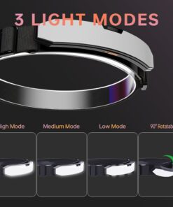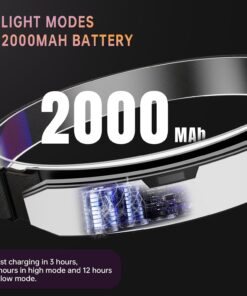 POWERFUL HEADBAND LIGHT & 3 LIGHT MODES: Built-in 2000mAh rechargeable battery, Fast charging in 3 hours, and will give you up to 2 hours in high-light mode and 12 hours in low-light mode. Great gear for any situation, such as hiking camping running fishing hunting mechanic working.