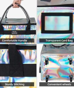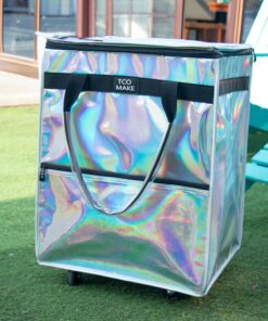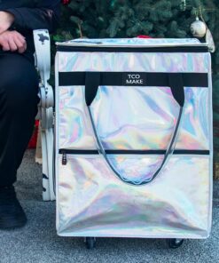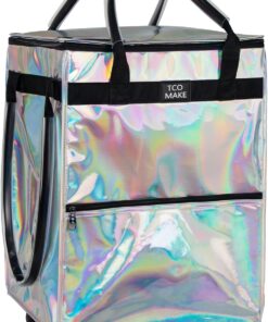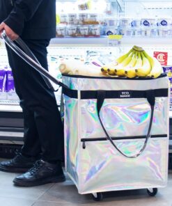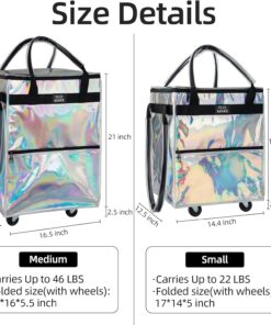 Reusable Grocery Bag on Wheels, Rolling Shopping Bags with Wheels and Handle, Folding Rolling Tote Trolley, 3 Pockets and Zipper Cover, Carries Up to 46 LBS (Medium, Phantom White)