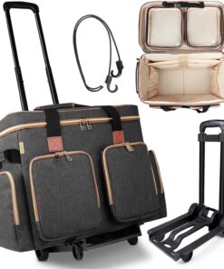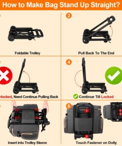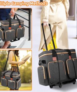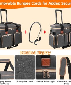 【Detachable Trolley with 2 Elastic Ropes】This rolling teacher tote bag is equipped with a foldable dolly. Its telescopic handle has three adjustable lengths (17.1/28/37.4 inch), which can meet different needs of height. 2 removable bungee cords and 2 silent wheels can add security. You need to pull back the handle to the end till clicked and locked, then the dolly can stand up straight.