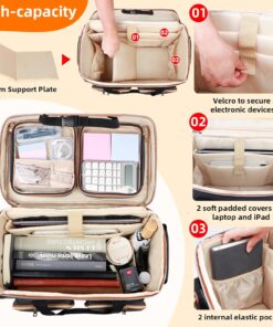 【Spacious Laptop Compartment】This rolling teacher bag with laptop compartment can accommodate folders, an iPad and 15.6 inch laptop in the padded pocket with touch fastern. A thick bottom padding pad of teacher rolling laptop bag provides base support, keeping your computer, keyboard, research papers and books secured. It makes commuting convenient and provides easy daily storage.