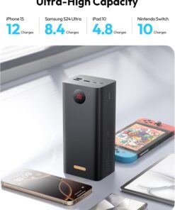 Ultra-High 60,000mAh Capacity: This power bank delivers multiple charges to smartphones, tablets, and other USB-powered devices. Get over 12 charges for your iPhone 15/14, 10 for your Galaxy S23, and 5 for your iPad, keeping your devices powered for weeks during trips