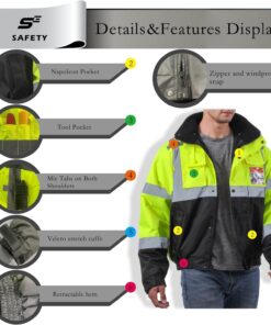 Conform to Criteria:sesafety hi vis bomber jacket men is fully compliant with ANSI/ISEA 107-2020, Type R Class 3, Waterproof rating 6000mm, Machine wash up to 50 times.Make work and life safer with sesafety work jacket