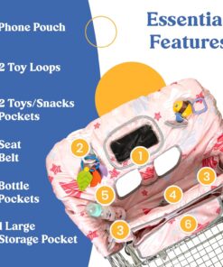 🛒Made for You & Your Baby’s Convenience: With 2 adorable designs to choose from, it’s ideal for boys and girls. Our seat cover is designed w/ 2 snack pockets, a bottle/cup holder with strap, smartphone pocket that fits most phone sizes, 2 toy loops for hanging toys & a large pocket for extra baby essentials. It’s compact & easy to install & carry, measuring 6.5″ x 13.5″ when folded & 31.5″ x 40″ when fully opened. It’s spacious but still travel-friendly & can be folded into a lightweight pillow