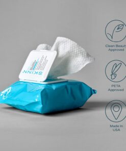 SKINN Facial Cleansing Makeup Remover Wipes – Hydrating Makeup Removing Cloths for Waterproof Mascara, Makeup, Oil, & Dirt – Disposable Face Towelettes that Gently Exfoliates, Cleanses, & Softens Skin