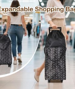 【Small cart&Large Capacity】The design of the expandable shopping bag can greatly increase the capacity of the shopping bag, when not in use, the expandable shopping bag can be easily retrieved, very convenient.