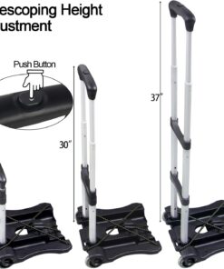 Lightweight aluminum frame and compact size. The foldable handle allows for storage/ transport easily. When folded, the truck takes up hardly any space and is easy to store or carry. Ideal for transporting goods weighing up to 110lbs