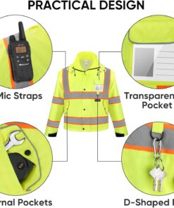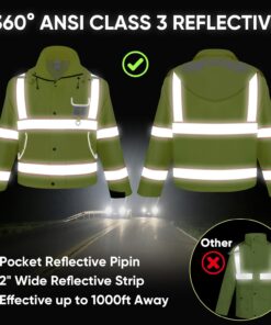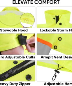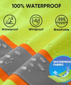 TICONN Reflective Rain Jacket Safety Jacket, Waterproof Hi Vis Rain Coat, Class III High Visibility Coat (Yellow&Black, S)