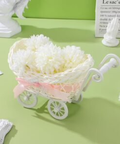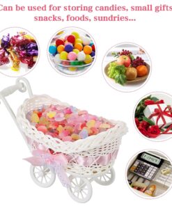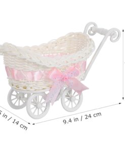 Cute Style: These mini stroller is in art cute style, plastic woven storage carts, suitable for candy, floral arrangements, wedding handmade props, etc., adding decorativeness to desktop organizers, shelf