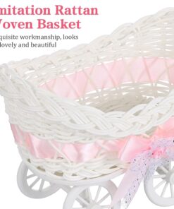 Cute Style: These mini stroller is in art cute style, plastic woven storage carts, suitable for candy, floral arrangements, wedding handmade props, etc., adding decorativeness to desktop organizers, shelf baskets