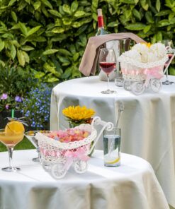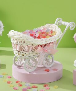 The basket with a stroller appearance design is creative and chic. It has a wide range of uses and can be used as a candy basket, basket, storage basket, decoration, etc.