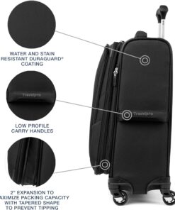 Travel light and move easily with this ultra-lightweight, durable 21-inch expandable carry-on spinner. Designed for comfort and effortless mobility, it features a 2-position adjustable PowerScope Lite handle with a patented Contour Grip and 360° spinner wheels for smooth rolling in any direction. Two exterior quick-access pockets, a full-length interior lid pocket, side accessory pocket, and adjustable hold-down straps keep your belongings organized. A high-tensile-strength expandable zipper provides up to 2 inches of extra packing space. Sizer bin tested to fit in the overhead bins of most major U.S. airlines. Backed by Travelpro’s Limited Lifetime Coverage and 1-year Trusted Companion Promise, covering repairs and shipping for airline or carrier damage.