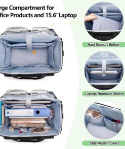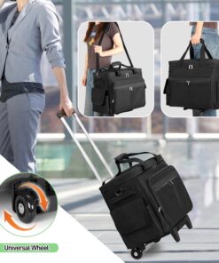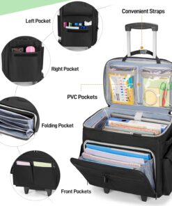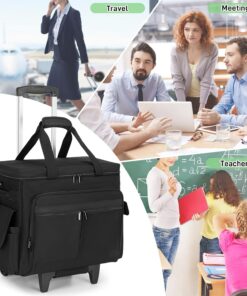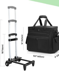 Trunab Rolling Teacher Bag with Expandable File Pocket and Detachable Trolley, Teacher Tote Bag with Wheels for up to 15.6 Inches Laptop (Patented Design) (Black)