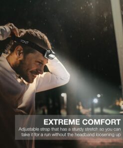 ERGONOMIC 45° TILT – Never strain or crane your neck again, thanks to the ergonomically designed light throw at a 45° angle. Competitor headlamps throw light at an awkward 30°, causing certain neck strain. By far, the comfiest camping headlamps ever.