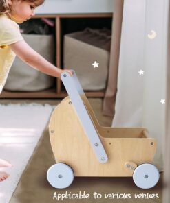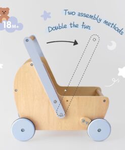 BABY DOLL STROLLER – The handle of the wooden doll stroller can be assembled in two directions, which doubles as a baby walker and pram for double the fun!