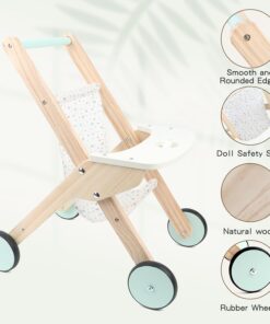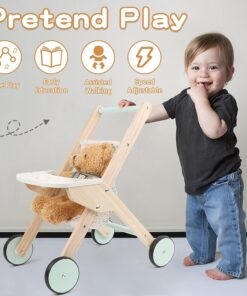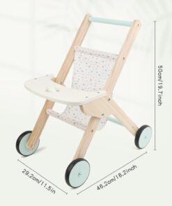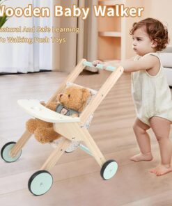 WOODEN BABY PUSH WALKER TOY: The baby walker in the shape of a baby stroller for dolls, your child can use this push walker to practice walking as well as push this walker and carry their toys around with them. And your child can put her favorite toys or dolls in push walker, then parents and child can enjoy realistic pretend play at home, outdoors.